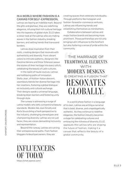 This is an editorial design from my editorial class at Full Sail University of a magazine page based on the popular fashion magazine “ELLE”. I have no real life affiliation with “ELLE” and this project is solely for research purposes.